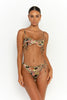 The Bea in Jaguar by Sommer Swim is a bralette bikini top with visible tie features, delicate gold hardware, adjustability for coverage with an embossed gold clip closure.