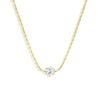 Adorn yourself with the Cherish Necklace. Featuring a stunning round CZ stone delicately placed on a classic chain, this necklace adds a touch of timeless elegance to any outfit. Show off your personal style and leave a lasting impression with this cute accessory.
