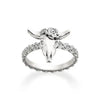 The Desert Rose Ring, in sterling silver, reimagines a timeless expression of strength and beauty from America's Southwest. The sunbleached skull, the rose in full bloom and the florals that embellish the band symbolize the balance of masculine and feminine, as well as past and present, in our everyday world. This engravable ring matches our Desert Rose Charm.
