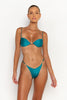 The Ella in Blue Fondale by Sommer Swim is a bralette bikini top with visible tie features, delicate gold hardware, adjustability for coverage with an embossed gold clip closure.