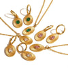 INS Style 18K Gold Plated Sunburst Earrings Stainless Steel Screw Zircon Paved Oval Pendant Necklace