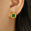 JEWELRY EH156 French Vintage Stainless Steel 18K Gold Plated Glass Stone Square Stud Earrings