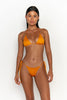 As part of Sommer Swim's Arabesque swimwear collection, this triangle style bikini top has luxurious features which include a lustrous shine and double lining for comfort and support. Mix and match the Kaia Turmeric bikini top with any Sommer Swim bikini bottoms.