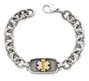 Crafted in sterling silver, our medical alert bracelet features a centrally placed 14k gold Star of Life symbol. The smooth surface on the back of this design is ideal for an engraved message to alert paramedics of an allergy or medical condition.