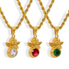 Natural Rainbow 18K PVD Plated Rope Chain Stainless Steel Cubic Zircon Angel Pendant 12 Months Birthstone Necklace