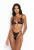 The Roma Bralette in Nero by Sommer Sensual is a triangle lace bralette with unique gold embellishments at the centre. Features hand-cut scalloped trim lace, triangle style coverage, hook fastening at back and adjustable shoulder straps