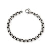 This sterling silver bracelet features a substantial box chain with a weathered texture and an heirloom feel. Wear it solo to make a bold statement or layer it with others for a look that's all your own.