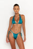 The Ryan in Blue Fondale by Sommer Swim is a halter style bikini top with a gold front ring feature, thicker band for extra support and adjustability around the neck