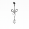 Fall for the Sweetheart Belly Ring. Featuring a dainty bow with dangling and a sparkly CZ heart, this girly piece is giving major flirty vibes. Cute, trendy, and perfect for showing off.