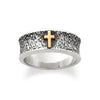 Add this beautifully crafted and artfully detailed Textured Silver Band with Gold Cross to your growing collection.